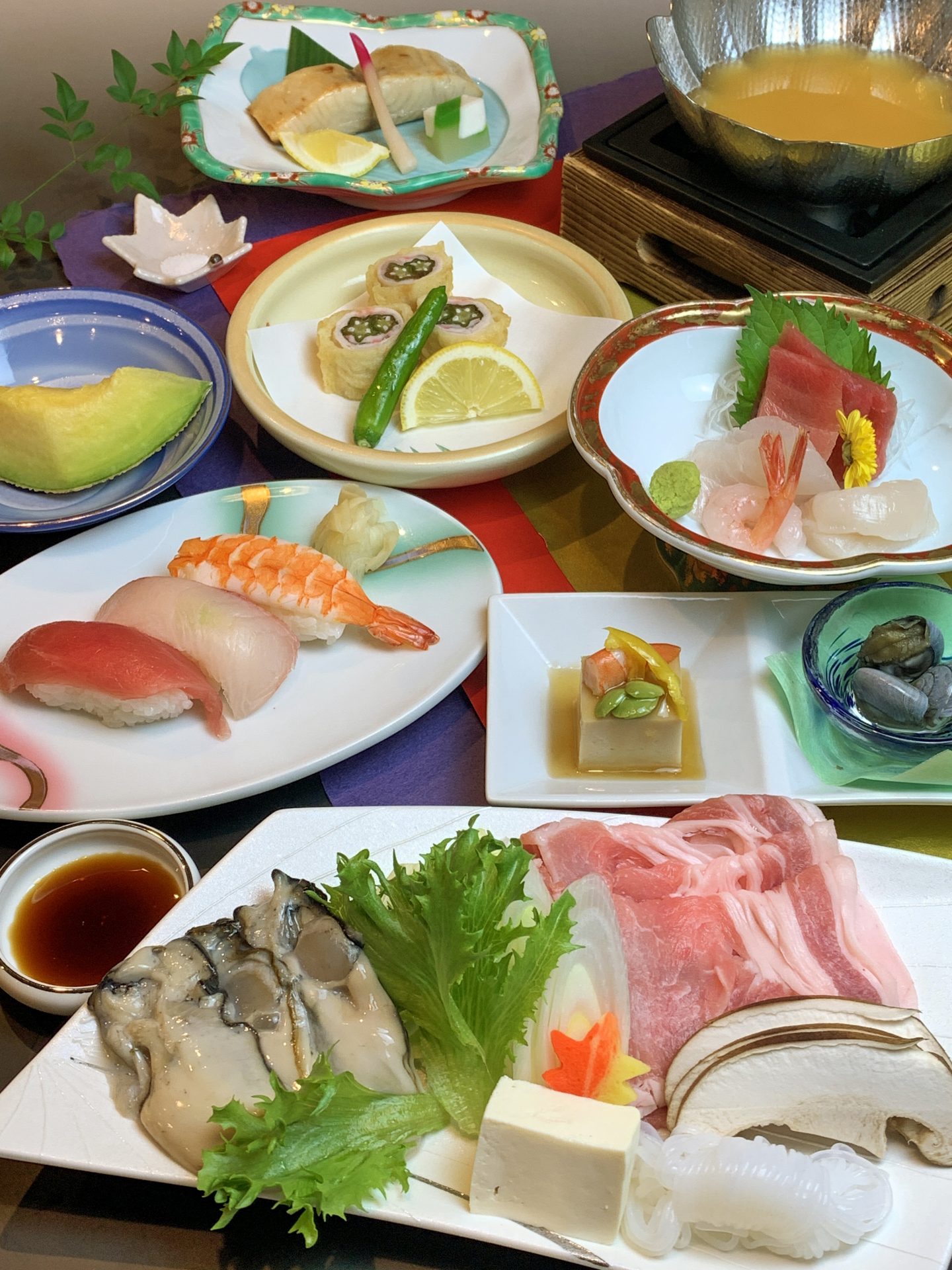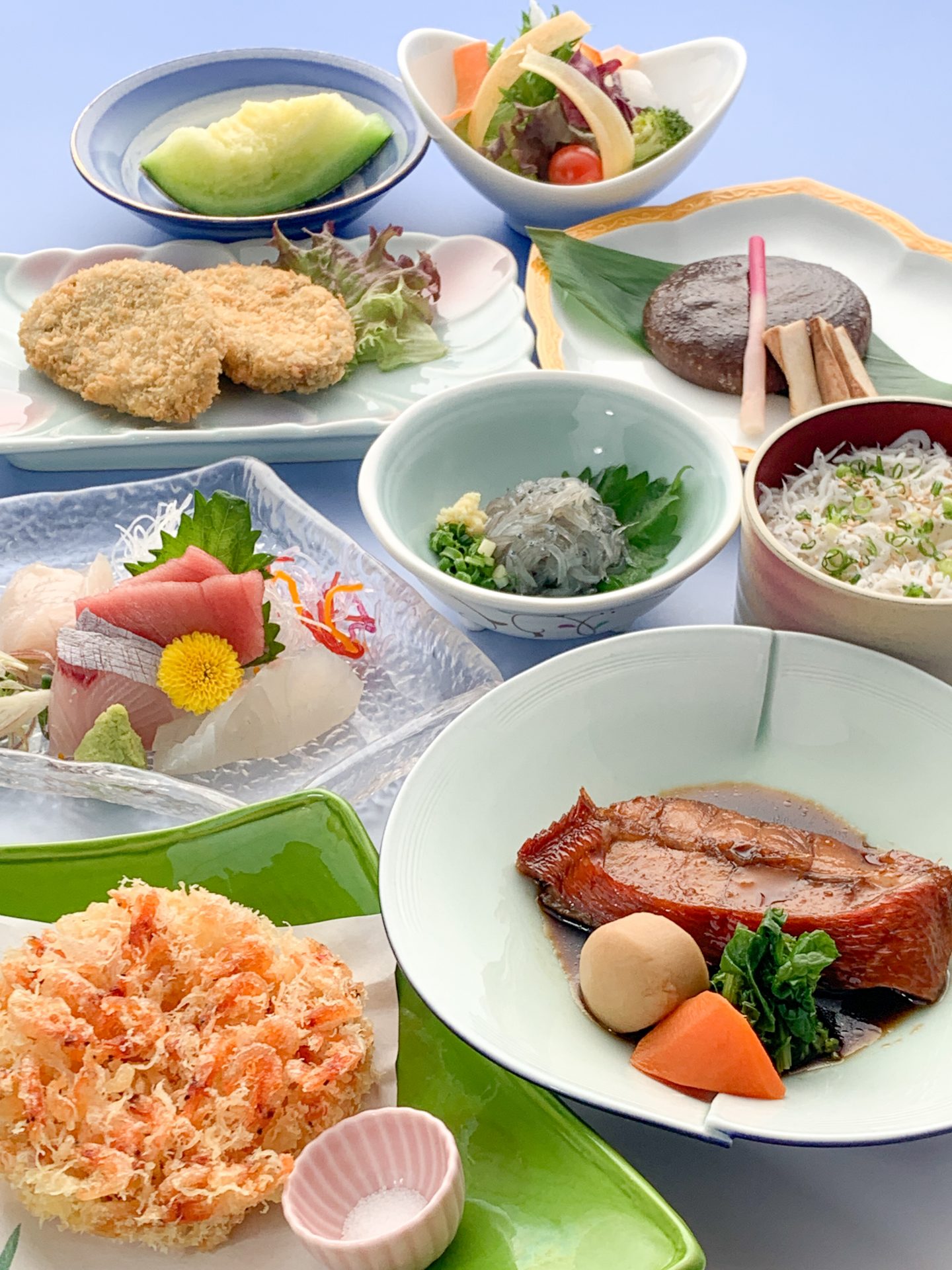 planコース コース 厳選まぐろのしびしゃぶコース 6050円(税込) 「魚時のまぐろ」は、毎日200本以上並ぶ静岡中央卸売市場から厳選して仕入れており... 詳しくはこちら 熟成真鯛の極みコース 4950円(税込) ―——魚の熟成。 これまで魚は釣れたてや処理をして数日寝かせて旨味を引き出... 詳しくはこちら しずおかの恵み 富士 8250円(税込) 静岡県の名物を集めたコース。 特撰和牛静岡そだち、金目鯛、桜えび、白す、黒はん... 詳しくはこちら しずおかの恵み 駿河 6050円(税込) 静岡県の名物を集めたコース。 金目鯛、桜えび、白す、黒はんぺん、県内産フルーツ... 詳しくはこちら しずおかの恵み 三保 4950円(税込) 静岡県の名物を集めたコース。 桜えび、白す、黒はんぺん、県内産フルーツに加... 詳しくはこちら 海鮮と特撰和牛「静岡そだち」富士山溶岩焼コース◇海鮮素材/溶岩焼/お刺身/お寿司… 8250円(税込) 富士山の溶岩石を切り出した「溶岩石プレート」を使い、高級黒毛和牛「静岡そだち」と... 詳しくはこちら 特撰和牛「静岡そだち」富士山溶岩焼コース◇静岡そだち/溶岩焼/お刺身/お寿司… 7150円(税込) 富士山の溶岩石を切り出した「溶岩石プレート」を使い、高級黒毛和牛「静岡そだち」を... 詳しくはこちら 海鮮溶岩焼コース◇海鮮素材/溶岩焼/お刺身/お寿司… 6050円(税込) 富士山の溶岩石を切り出した「溶岩石プレート」を使い、「魚時会館おさかな亭」自慢の... 詳しくはこちら 静岡県産ブランド豚「ふじのくに」と牡蠣の贅沢味噌鍋コース◇豚牡蠣味噌鍋/お刺身/お寿司.. 5500円(税込) 静岡県産ブランド豚「ふじのくに いきいきポーク」と、旬の「牡蠣」をメインに「藤枝... 詳しくはこちら 駿河国「豚」味噌鍋コース ◇豚味噌鍋お刺身/お寿司… 4950円(税込) 静岡県産ブランド豚「ふじのくに いきいきポーク」をメインに「藤枝産野菜」を具材と... 詳しくはこちら 「鶏」味噌鍋コース ◇鶏味噌鍋/お刺身/お寿司… 4400円(税込) 「伊豆みそ」の鍋つゆで仕立てた「鶏」味噌鍋と、「魚時会館おさかな亭」自慢の魚料理... 詳しくはこちら 鮪と牛豚(ぎゅうとん)の大満足すきしゃぶコース◇鮪と牛豚のすきしゃぶ/お刺身/お寿司.. 6050円(税込) 鮪と黒毛和牛と静岡県産ブランド豚「ふじのくに」を使用した「すきしゃぶコース」で... 詳しくはこちら 1 / 212»