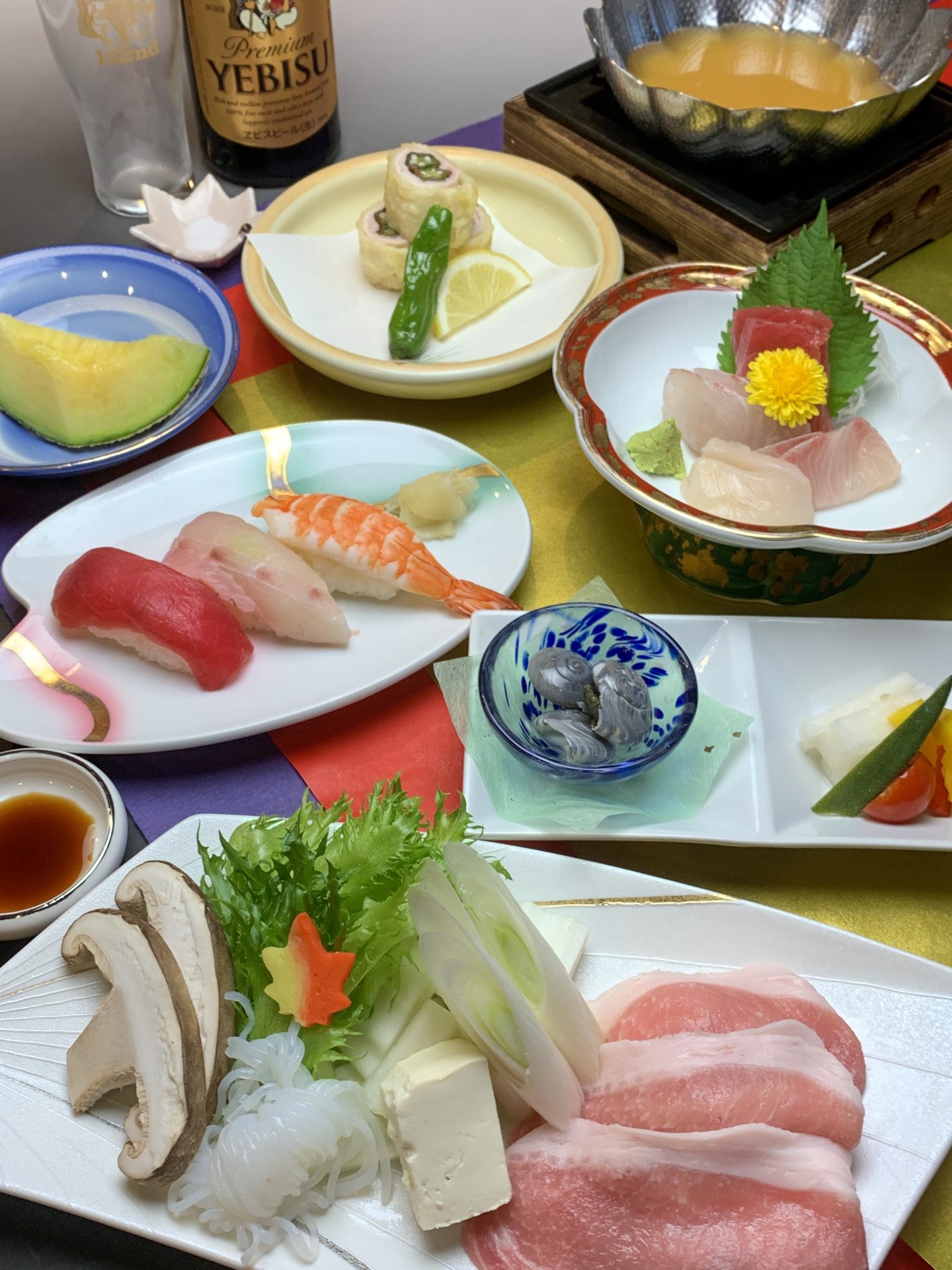 牛豚(ぎゅうとん)すきしゃぶコース◇飲み放題120分/黒毛和牛すきしゃぶ/お刺身/お寿司/地元野菜…
